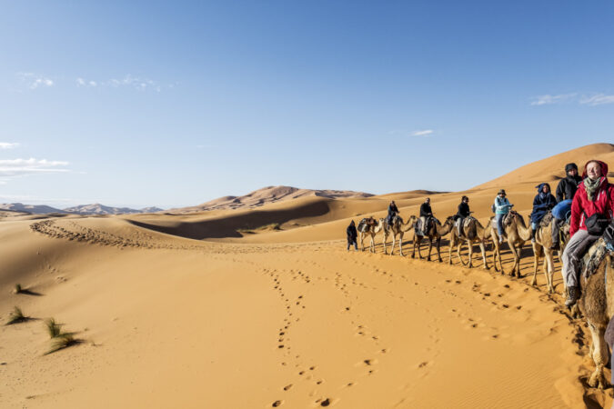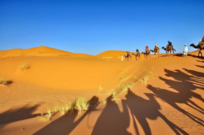 After lunch in Midelt, continue through the scenic Tizi n’Talghamt Pass, admiring the panoramic views of the Ziz Gorges and Ziz Valley with its palm-lined oases. The journey continues south through Erfoud and Rissani before reaching Merzouga, the gateway to the Sahara Desert.